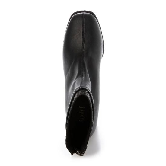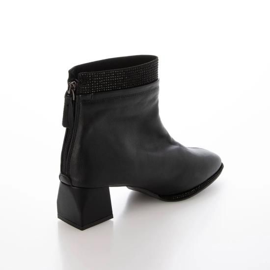 ラインストーンバックファスナーショートブーツ (ブラック)
