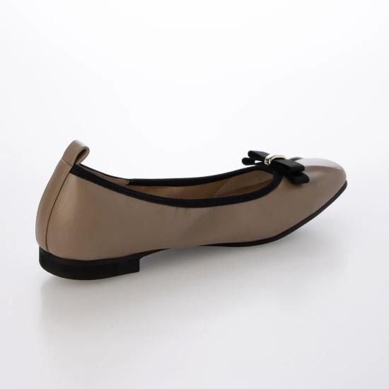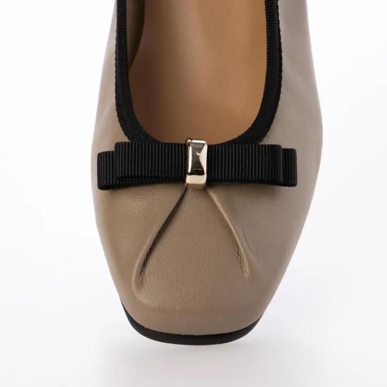 上品なリボンがポイントの大人の女性に良く似合うフラットパンプスです。