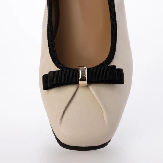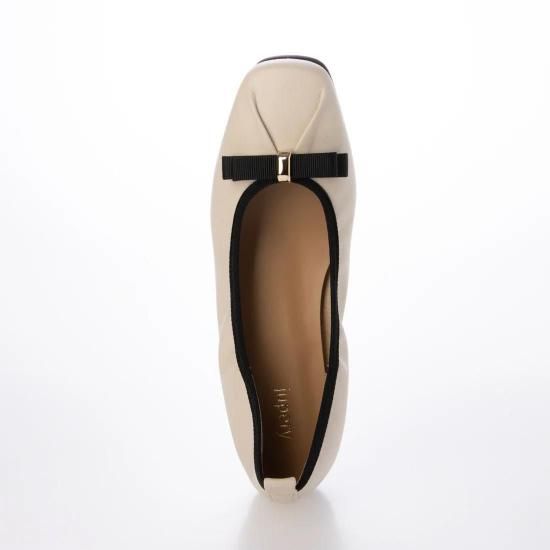 上品なリボンがポイントの大人の女性に良く似合うフラットパンプスです。